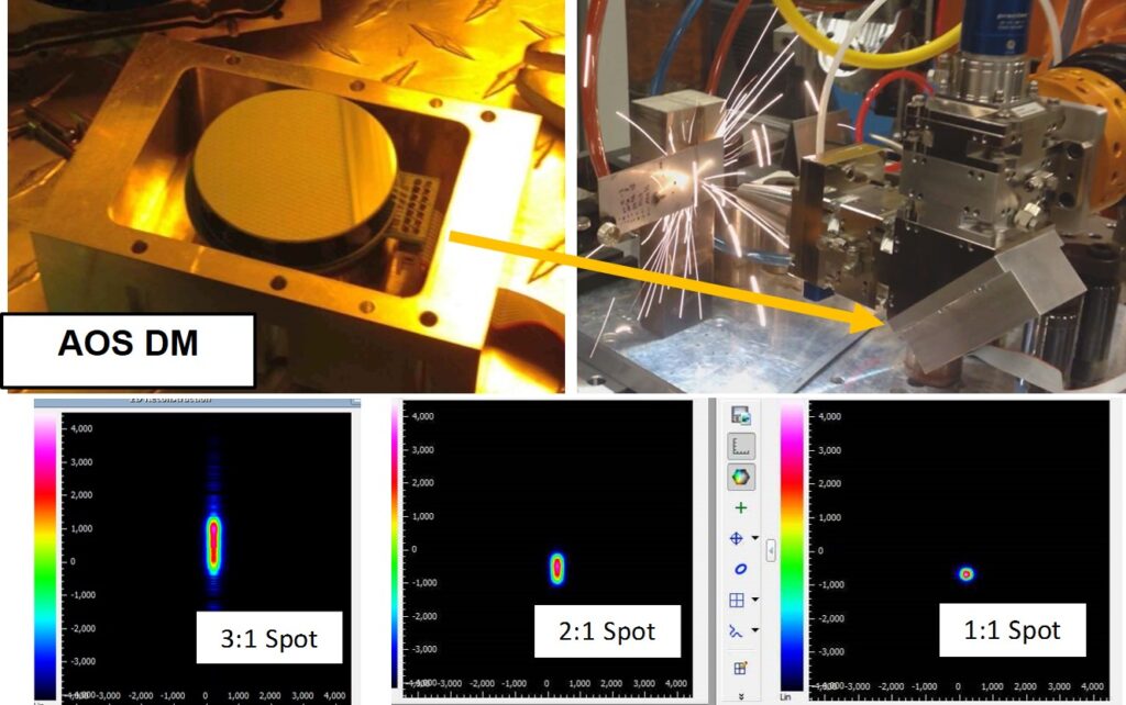 The 21-actuator device, shown above, was designed for high reflectivity at 1064nm. A recent experiment showed that one of these mirrors withstood 120 kW CW laser radiation without any thermally induced distortion. See: https://www.aos-llc.com/docs/HighPowerDMPressReleaseJM100628.pdf for more information.